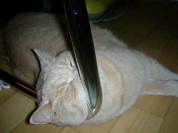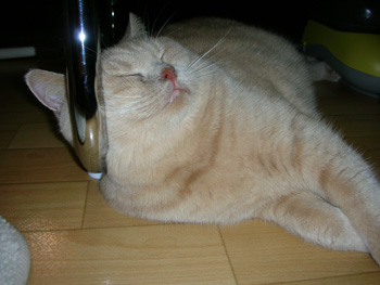 最近ではホッペばかりではなくお腹もプニプニ。 どうやらダイエット食に切り替わりそう・・・。 |
