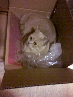 箱も新しくって、あんそにー君もほくほくだぁ! でもって、お引っ越しの段ボールに役立てるにゃんて最高じゃ 今日は寒いから、ダンボールで暖かくしてるのかな?
