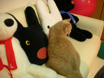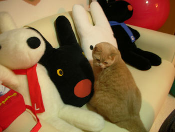 あんそにー君、お留守番ばっちりじゃないですかーー。ぢょりこさんのソファのリタとガスパールにあんそにー君、すっごいステキですね。いいなあ。すごくかわいい。 22日はあんそにー君のたんじょうびだったのですね。オメデトウゴザイマス☆これからもよろしくね!! ままかり&バレンより >minkwinさん