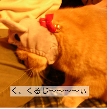 でも、あんそにー君にはきつかったのですね。 かわいいのに残念・・・ ちなみにバレンも去年買ったサンタのかぶりものが、はいりませんでした・・・(汗 >ままかりさん
