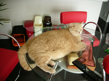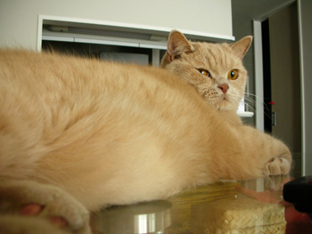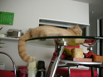 やっぱりガラスのテーブルは気持ちいいにゃー