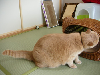 新しい猫ベッドの後ろにあるのはトイレじゃないから。