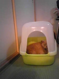 最近買ってもらった僕の小部屋に入って寝る。